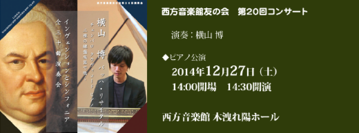 横山 博 バッハ・リサイタル <ピアノ公演>