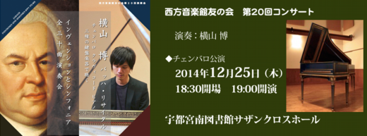 | 日時 | <チェンバロ公演> 2014年12月25日(木) 18:30開場 19:00開演 |