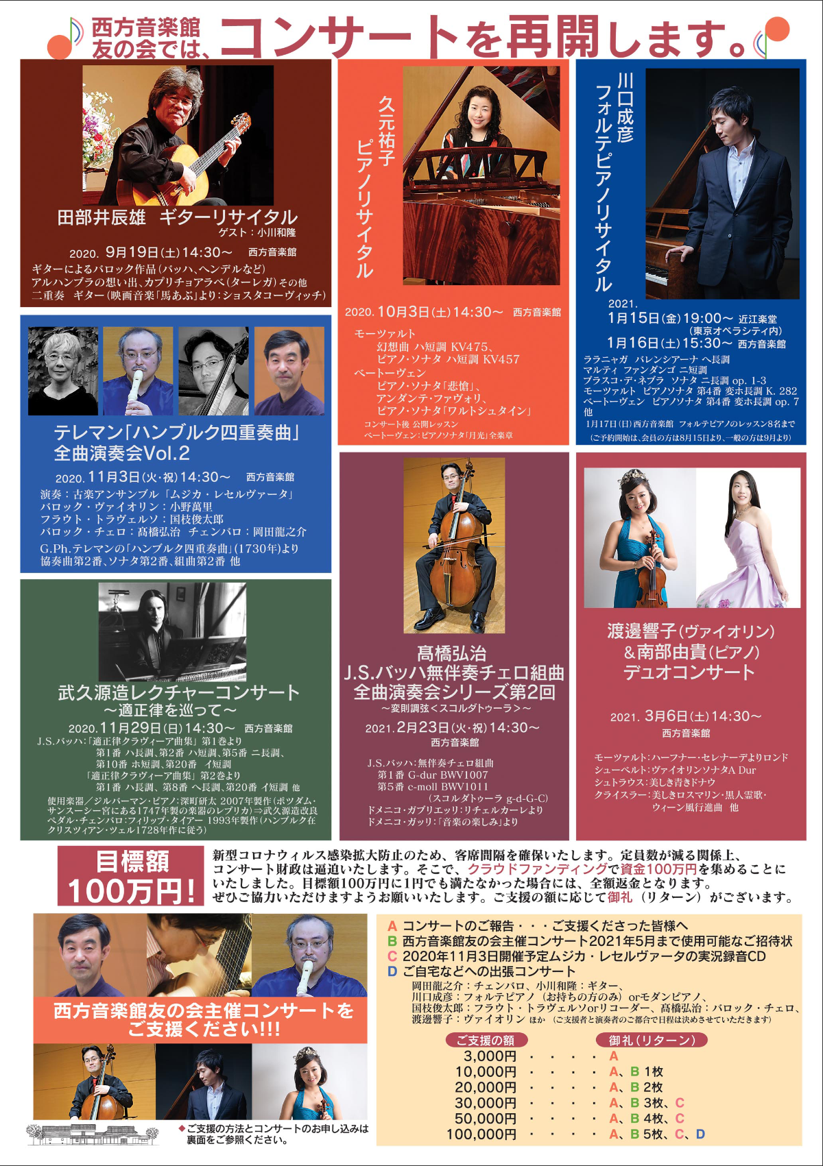 ご予約者が10名を越えましたので、追加公演が確定いたしました。まだ残席ございますので、ぜひご予約ください。 ぜひこの機会に、平均律と適正律の違い、J.S.バッハの意図など、実演付きの興味深いレクチャーにご参加ください。クラウドファンディングで1万円以上ご支援いただいた方は、ご招待の対象となります。