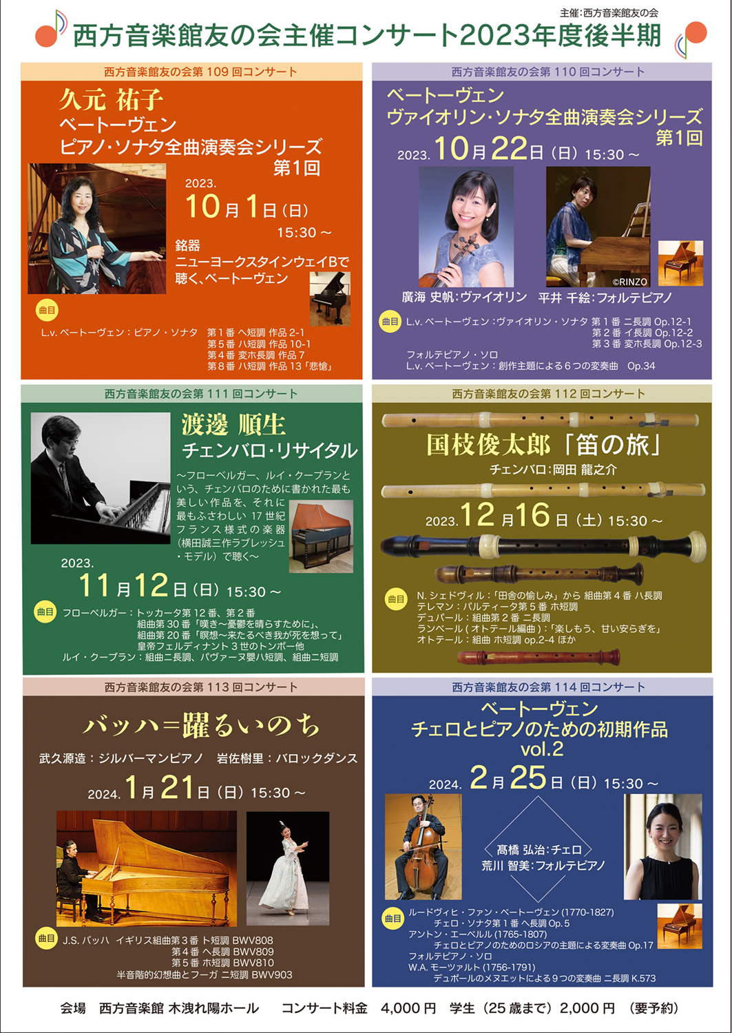 | 日時 | 2023年11月12日(日)15:30〜 西方音楽館 木洩れ陽ホール |