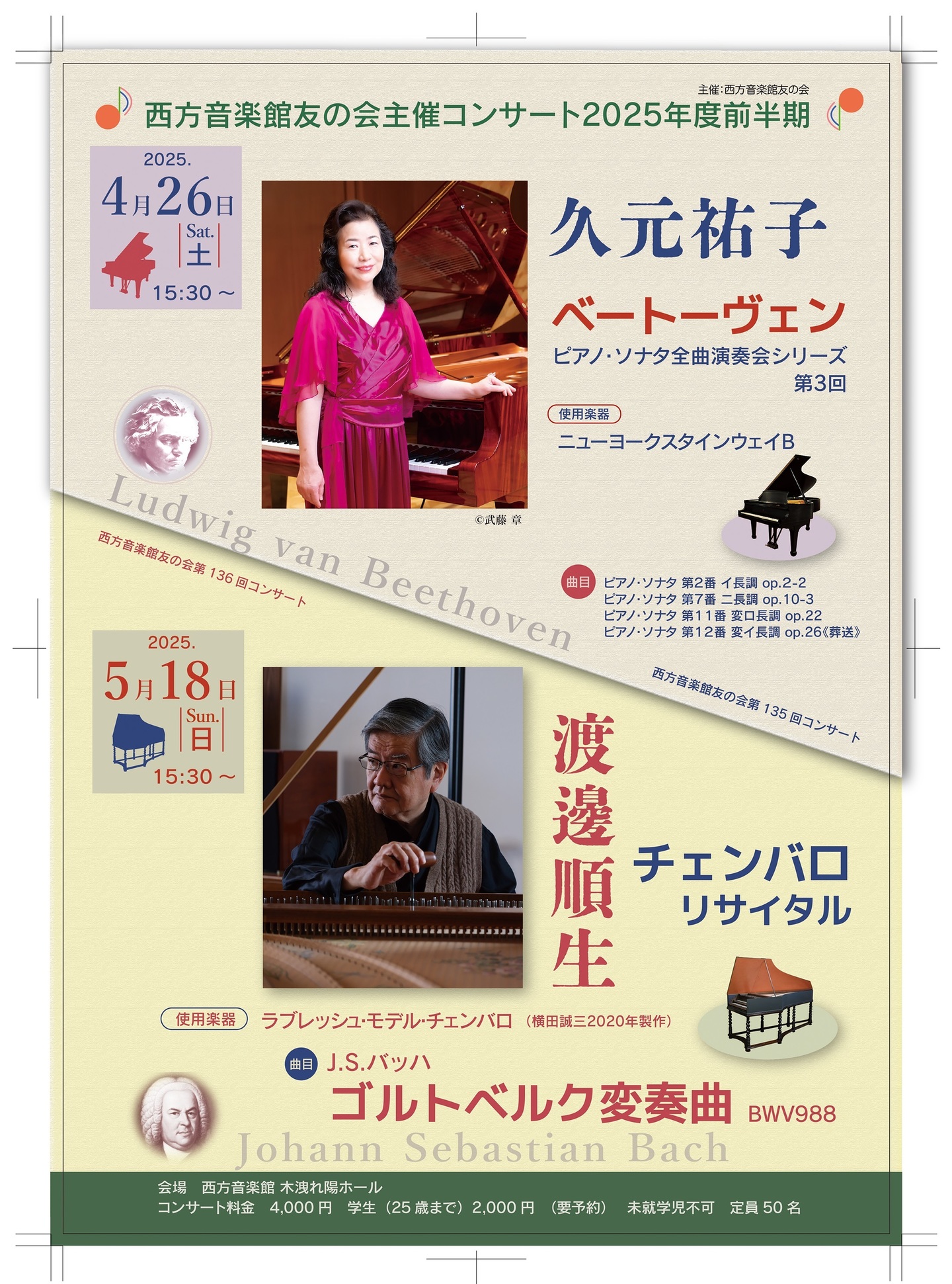| 日時 | 2025年5月18日(日)15:30〜 西方音楽館 木洩れ陽ホール |
