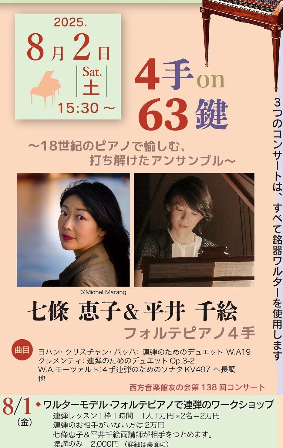 8月1日(金)ワルターモデル・フォルテピアノで連弾のレッスン
