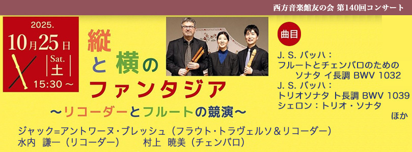 | 曲目 | J. S. バッハ:フルートとチェンバロのためのソナタ イ長調 BWV 1032 |