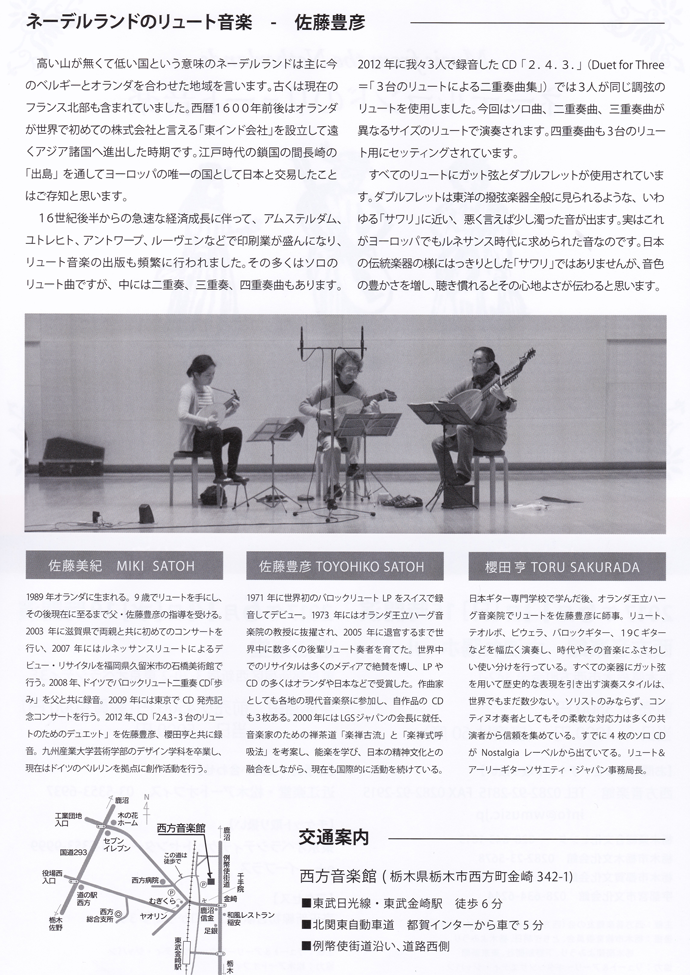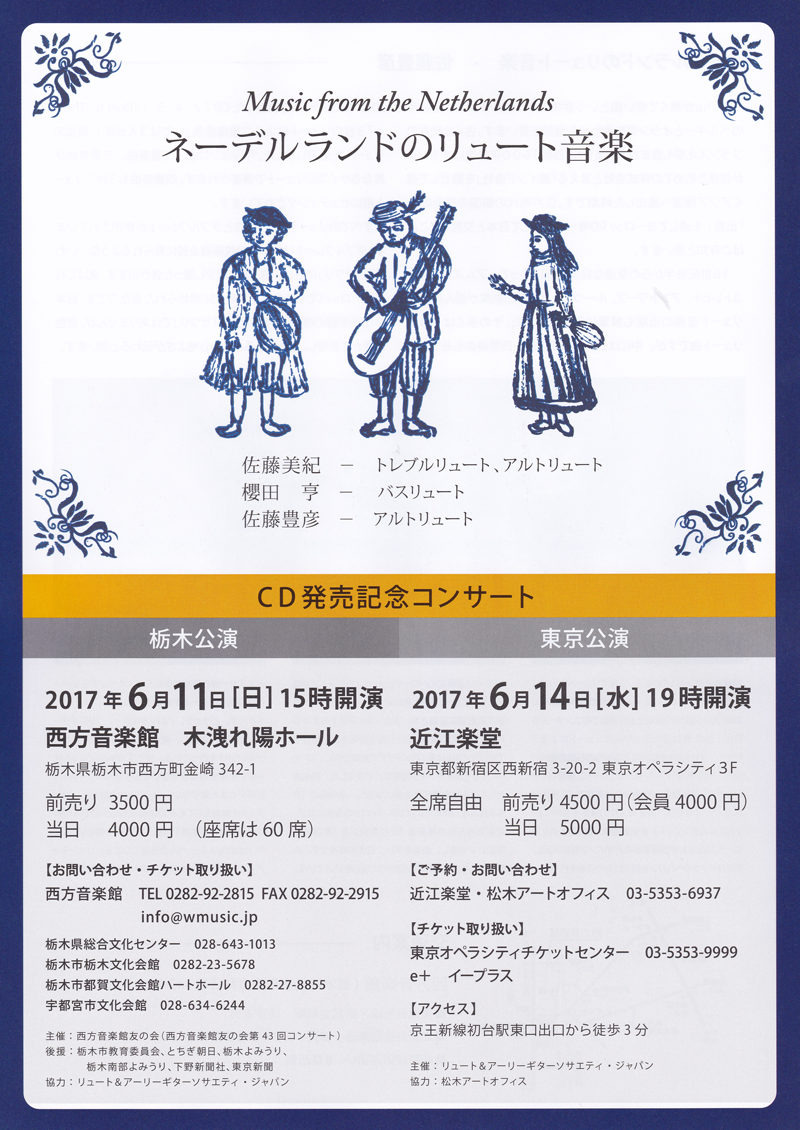 このすべてを演奏するわけではありませんが、CD発売記念コンサートなのでこの中から演奏します。世界的なリュート奏者の佐藤豊彦氏による演奏だけでなく解説、お話もあります。