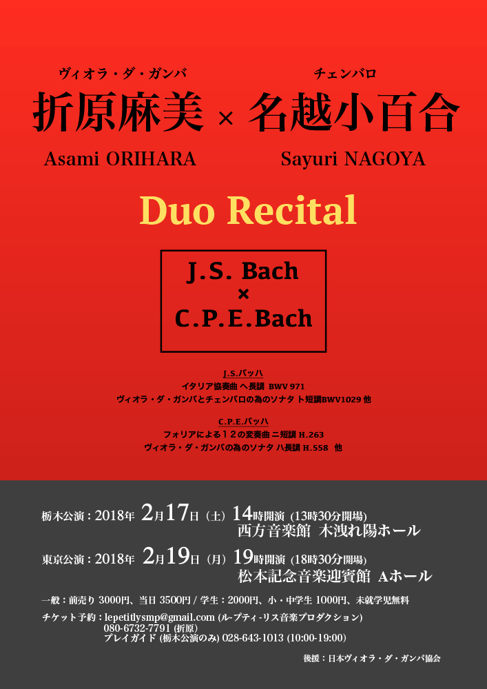 折原麻美・名越小百合 デュオ・リサイタル 「J.S Bach × C.P.E Bach」