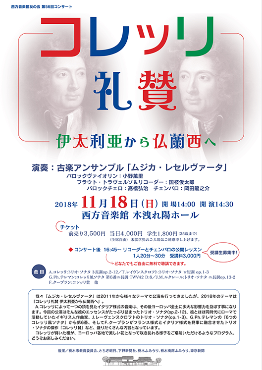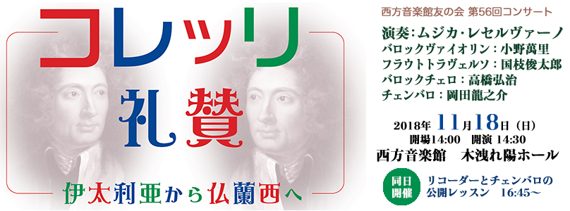 「ムジカ・レセルヴァータ」は2011年から様々なテーマで公演を行ってきましたが、2018年のテーマは「コレッリ礼賛 伊太利亜から仏蘭西へ」。