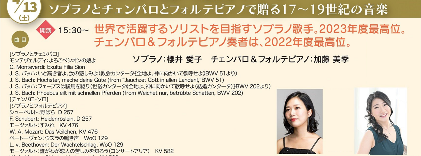 ソプラノとチェンバロとフォルテピアノで贈る17~19世紀の音楽