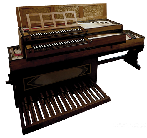 モデルとなったヨーハン・ダーフィット・ゲルステンベルクによって1760年に製作されたとされる楽器は現在ライ プツイッヒのグラッシ楽器博物館に比較的良い状態で保存されている。製作に当たっては、オリジナル楽器の調査、 採寸に基づく研究論文や図面を参考にした。参考資料からだけでは不明確なことや、1台当たり500Kgを越える弦の 総張力によって楽器がどの程度変形しているかを調べるためにグラッシ博物館に赴いて調査を行った。できるだけオ リジナルに忠実に復元することとしたが、ペダル楽器の内部にはオリジナルにはない補強を入れて、弦張力による変 形を減少するようにした。また、ペダルの最高音をc1からd1に拡張した。歴史的にペダルクラビコードの例は他にも あるが、性格の異なる手鍵盤楽器を2段に配したのはこのモデルの特徴で同じ音域で両手が交錯するバッハのトリオ ソナタのような曲を演奏可能にしている。