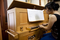 スヴェーリンクの曲数曲、ハイドンの曲、モーツアルトの時計のための曲、わらべうたと民謡を交えた即興演奏、鳥の歌。古い音楽から、現代の音楽まで、このボックスオルガンで可能な限りの、ストップの組み合わせを用いて演奏して下さいました。