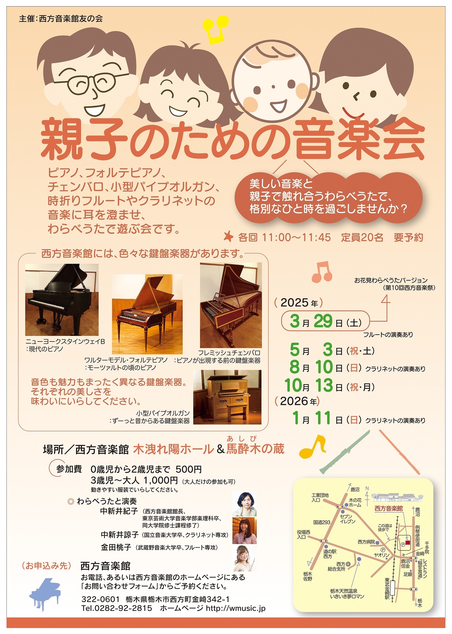 お申込み・お問合せは、【 ご意見・お問い合わせフォーム】、又は0282-92-2815(西方音楽館)よりご連絡をいただきますようお願いいたします。