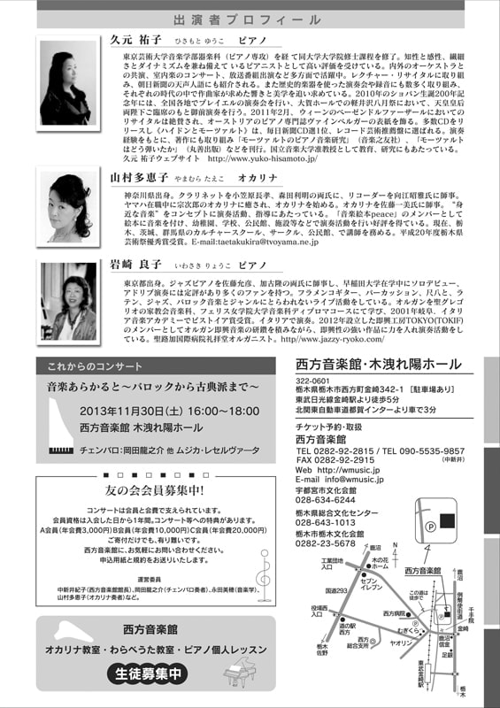| 場所 | 西方音楽館 木洩れ陽ホール 80席(要予約) |