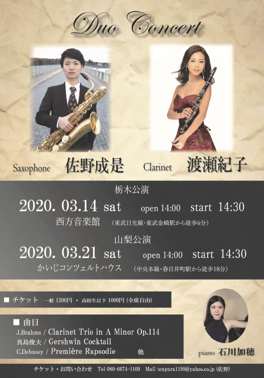 Clarinet&Saxopone Duo concert【栃木公演】