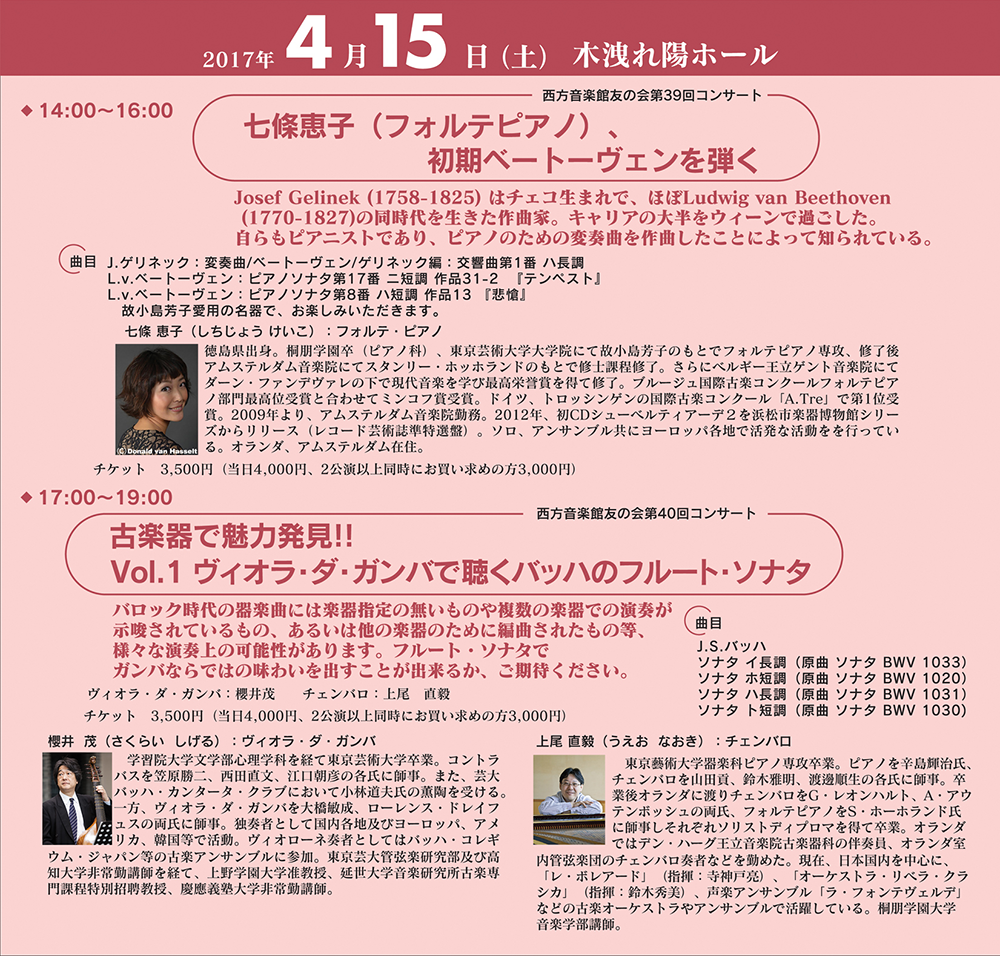 七條恵子(フォルテピアノ)、初期ベートーヴェンを弾く