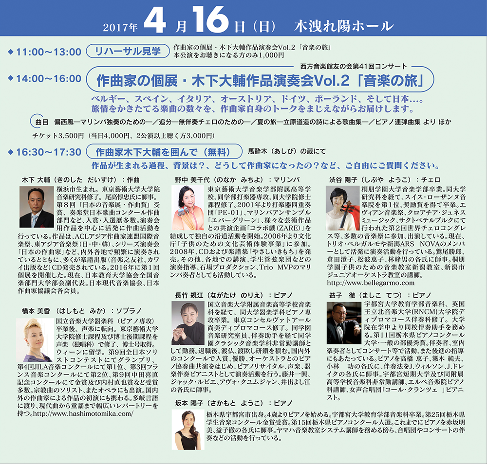 作曲家の個展・木下大輔作品演奏会Vol.2「音楽の旅」