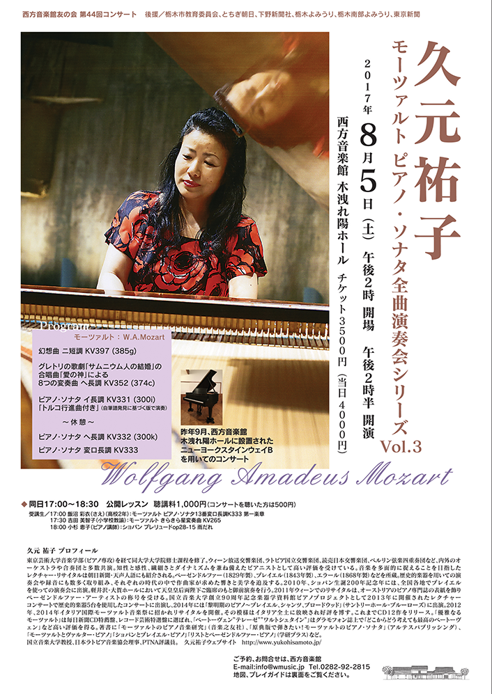 モーツァルト ピアノ・ソナタ全曲演奏会シリーズVol.3
