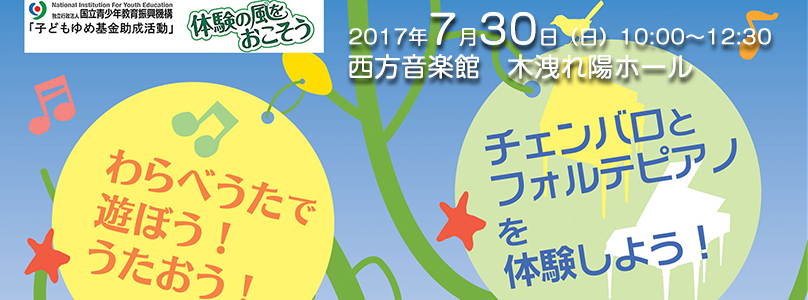 | 日時 | 2017年7月30日(日) 10:00〜12:30 場所:西方音楽館 木洩れ陽ホール |