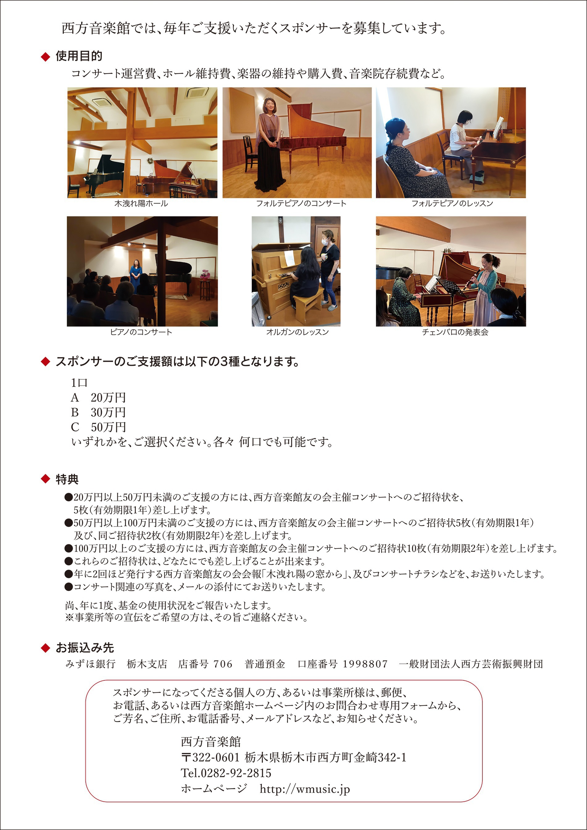 ※お芳名は、西方音楽館基金台帳に記録いたします。