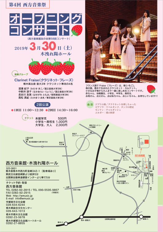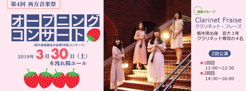 | 日時 | 2019年3月30日(土) 1回目公演 11:00〜12:30 2回目公演 14:30〜16:00 場所:西方音楽館 木洩れ陽ホール |