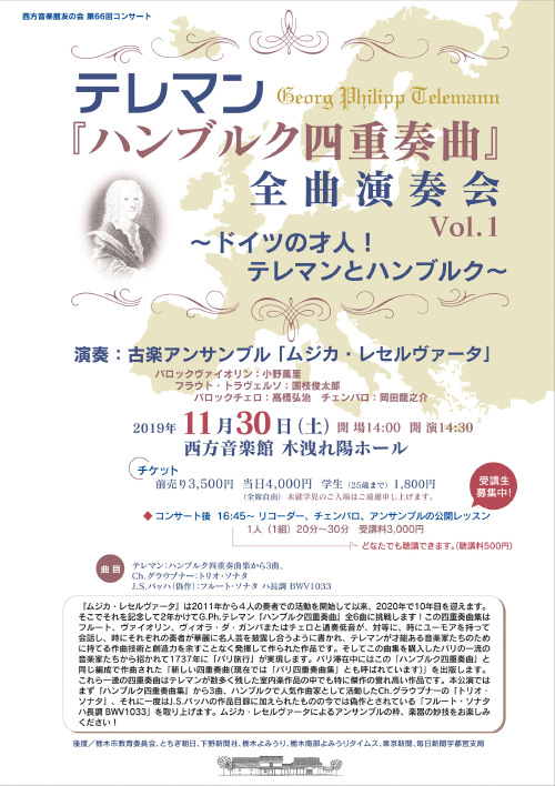 テレマン『ハンブルク四重奏曲』 全曲演奏会 Vol.1