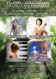 久保亜未さんのオリジナル作品も含め、クラシック、ジャズ、タンゴを取り交ぜ、コンサートに馴染みのない方でも楽しめるコンサートです。演奏する4人は県内在住の実力派。